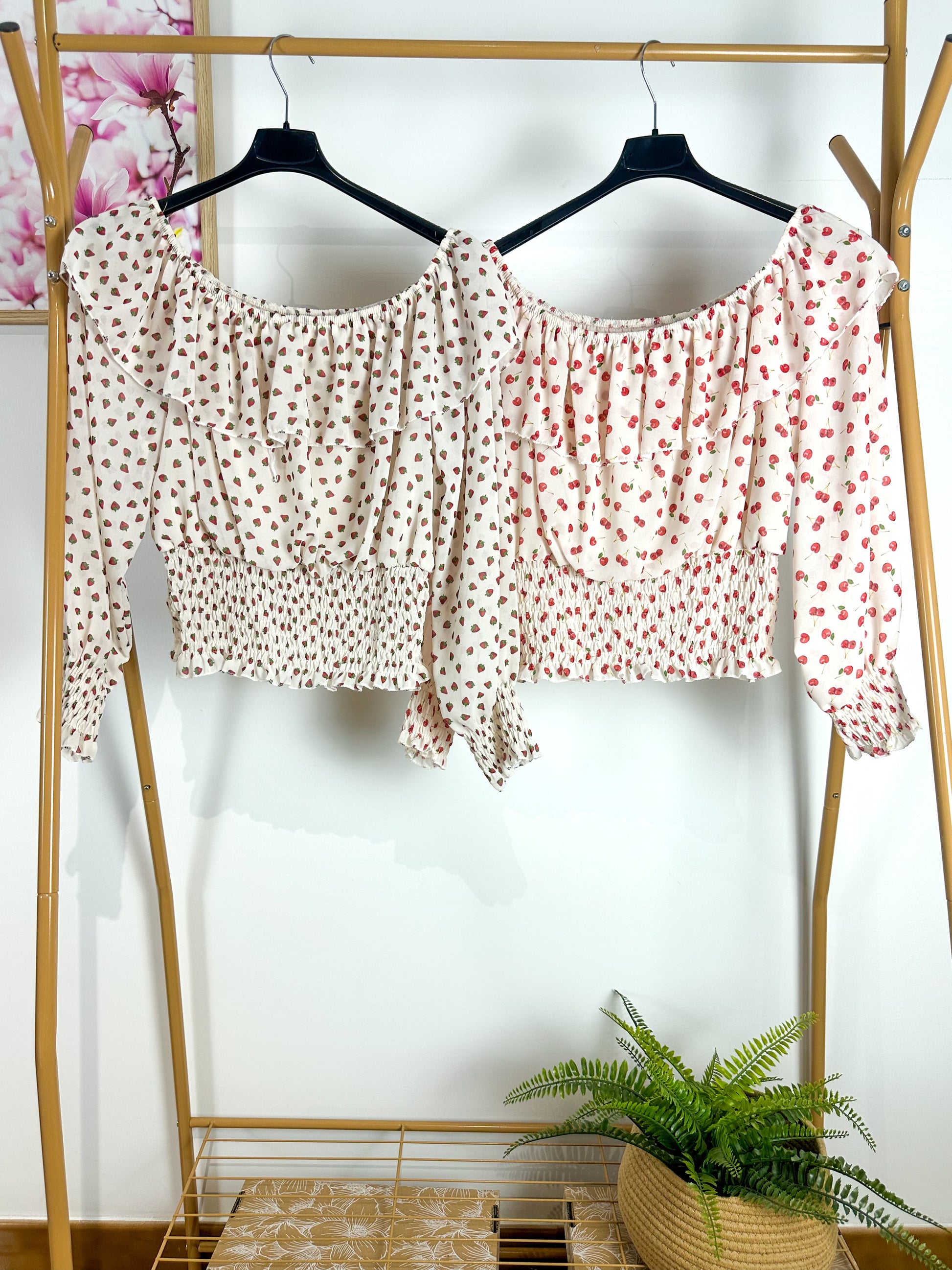 Casacche cropped con smock in vita, maniche con polsini elasticizzati, da indossare lunghe oppure 3/4 a sbuffo, e una balza sullo scollo che dona movimento.